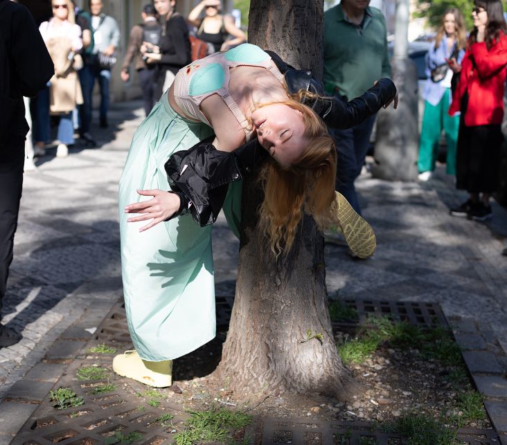 Yana Reutova působí v Čechách již 4 roky a věnuje se intenzivně tvůrčí práci, zpočátku především s tanečnicemi z Ukrajiny, které rovněž uprchly před válkou do zemí EU, postupně stále více s umělci z ČR i dalších zemí. Její nejnovější sólo je vyvrcholením dvouletého tvůrčího procesu, který započal na rezidenci s brazilskou tanečnicí Clarou da Costa, nejprve jako práce na kratším outdoor duetu Womanhood. Ten postupně obě spoluautorky tematicky rozvíjely v očekávaný celovečerní indoor formát, jehož premiéru zažijí diváci festivalu TANEC PRAHA 22. června 2026. Sólo bude závěrečnou částí tohoto programu, zároveň je však každá ze tří částí realizovatelná samostatně, flexibilně nabízející i outdoor formáty např. Artist Trip, jenž představily autorky na České taneční platformě 2025 (viz foto).
