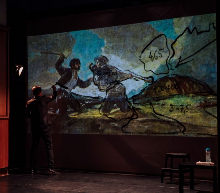Každým úderem se noří hlouběji a hlouběji. Jak dlouho to potrvá, závisí na míře agrese: čím vášnivější souboj, tím strhující pohyby. Noří se stále rychleji. O propadlišti, které je pohlcuje, nemají ani tušení. Veškerý ten dekor, který nikdy nikoho nezajímal, se prodírá surově a bez varování mezi staronovými intrikami. Pod povrchem vlastnictví a pozemkových spekulací se hýbe jiná voda. Zaplavuje agoru diskusí o identitě. U kořenů: molekuly, reakce, mutace, koktejly. Jenže jak to teď vyměří zeměměřič? Obec je přece majetkem zámku. A mlha, ve které je zahalena, se jmenuje antropocén. Síla faktického je nepohodlnou zprávou pro intelekty, které zůstávají přesvědčeny, že jakákoli zmínka o skutečnosti nutně zavání reakcionářskými fantaziemi.